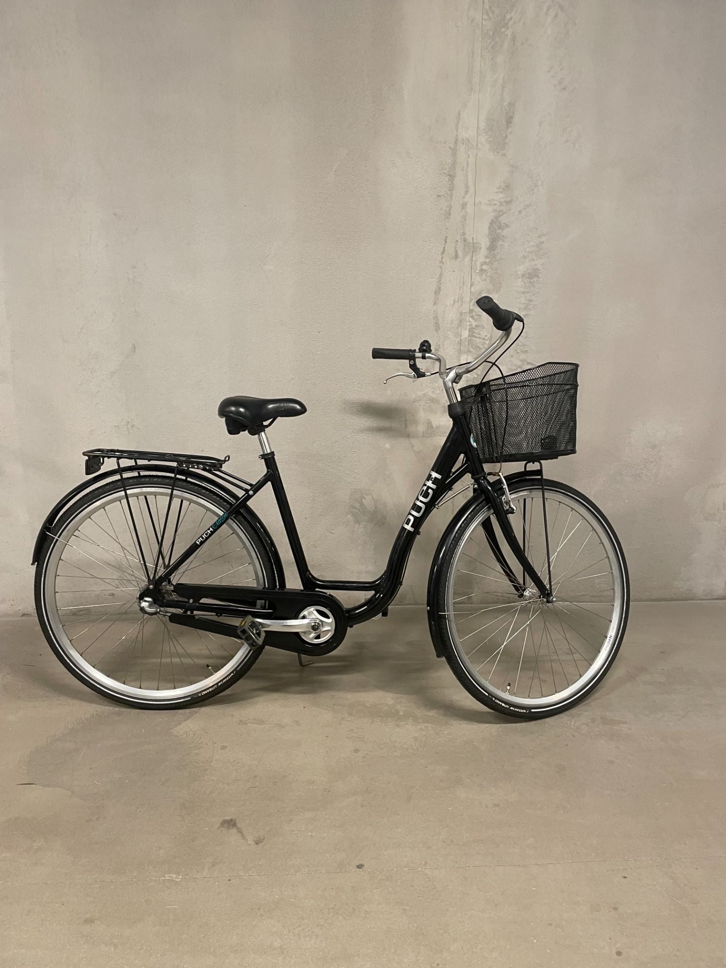 Cykel i bra skick. Däck och slang är bytt fram och bak så de är i fräscha. Naven är också nyligen servade. Korgen har börjat spricka lite i botten och lampor går att köpa till.